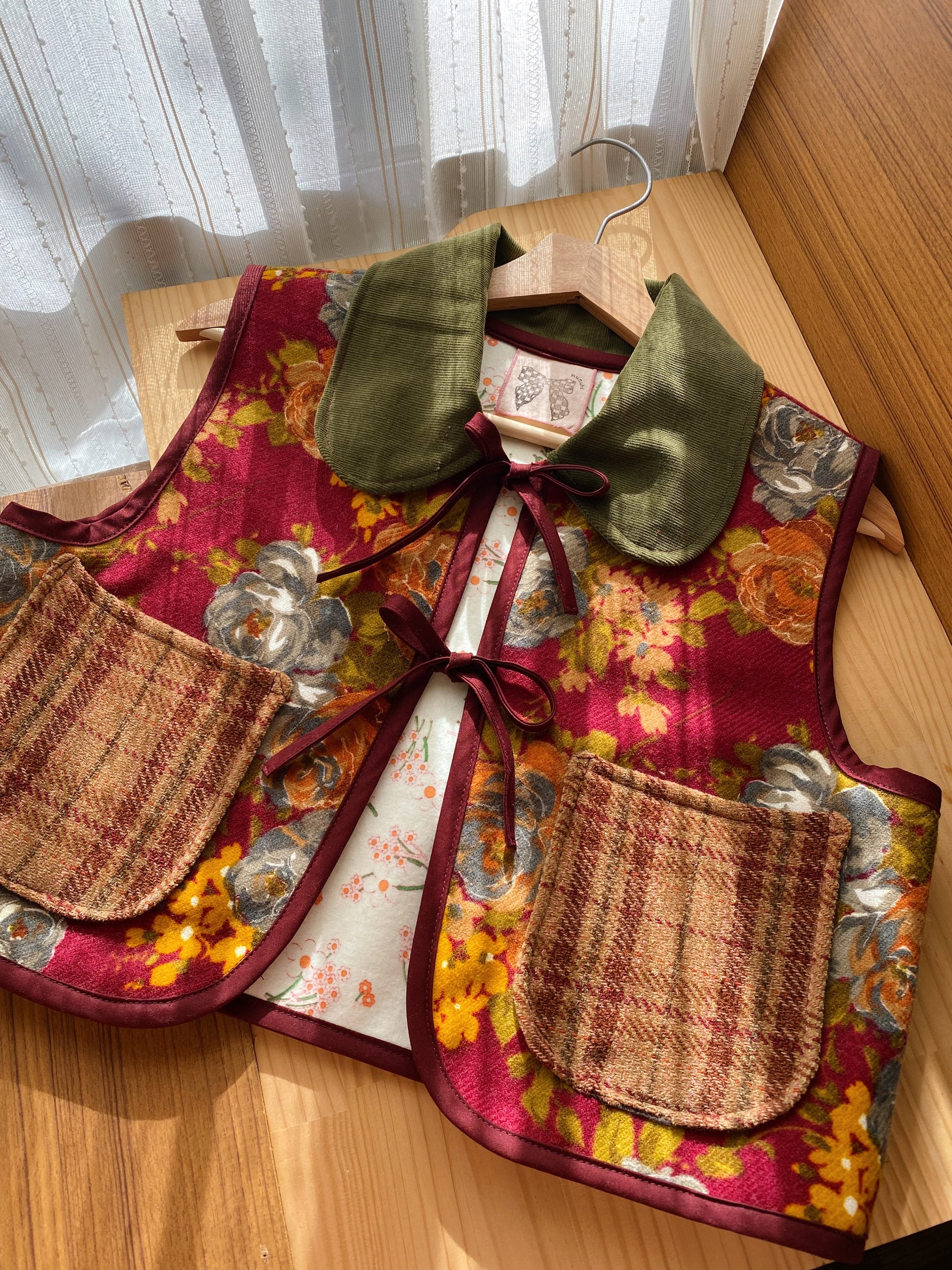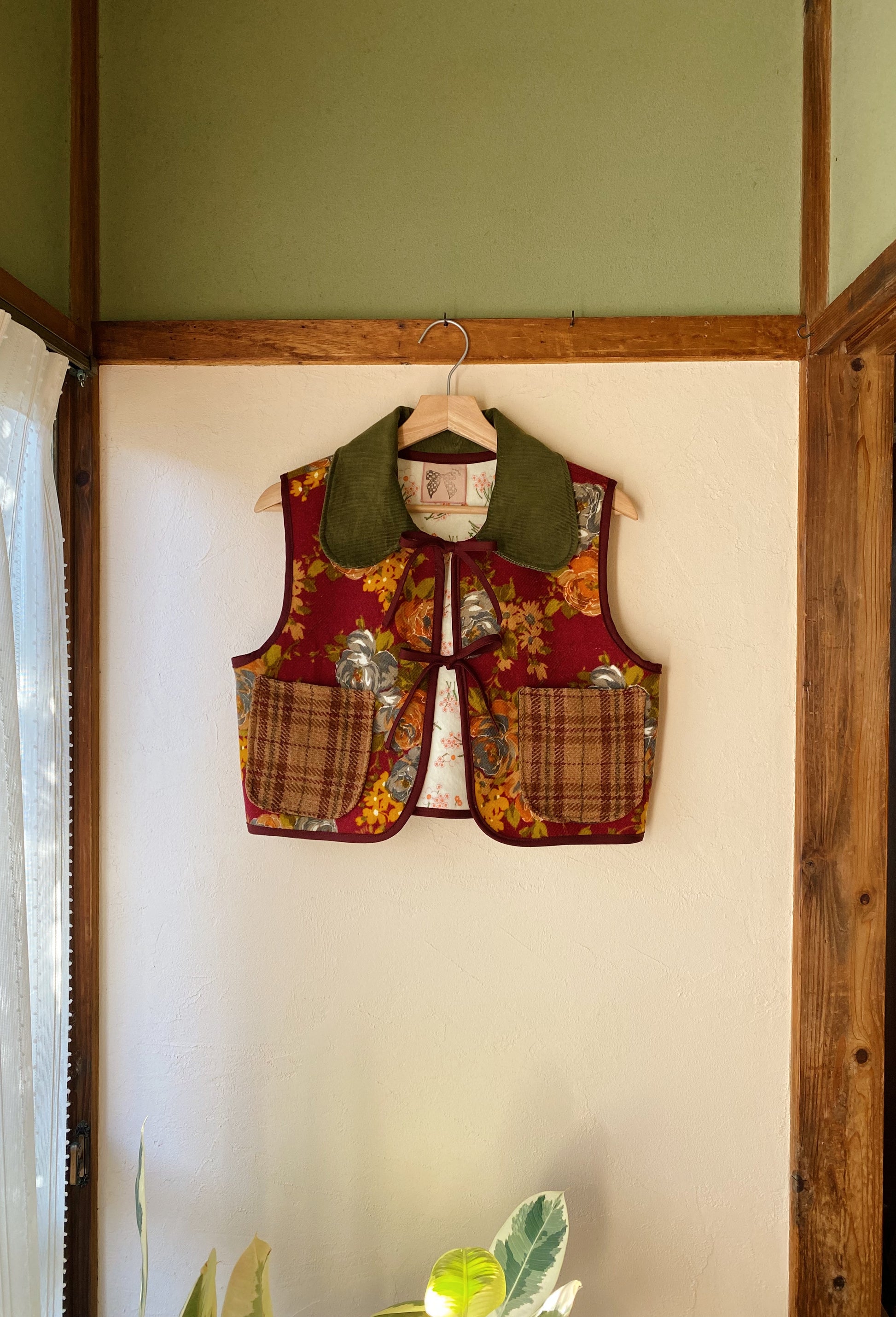レトロな花柄ブランケットをつかった襟付きジャケットベスト