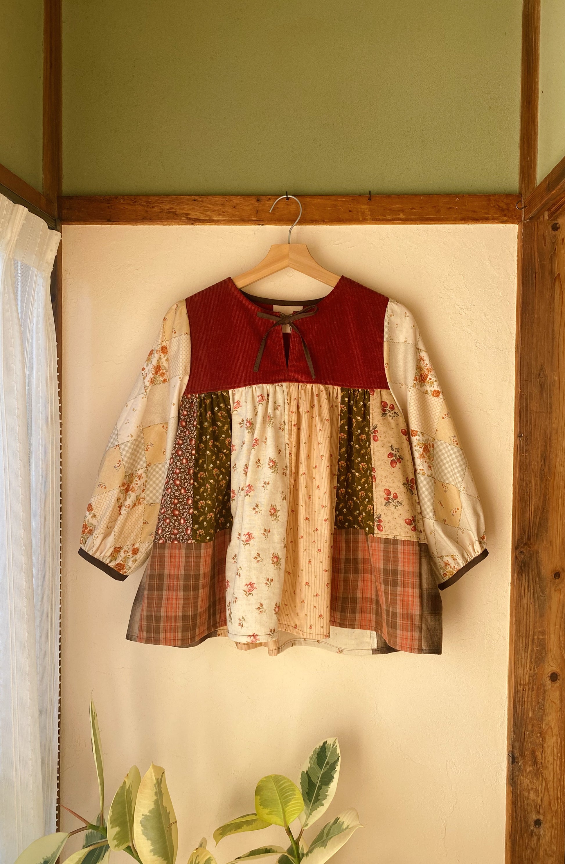 Front tie patchwork blouse this exquisite piece features a front tie and a beautifully gathered silhouette. The magic of patchwork brings together elements of whimsy and nostalgia.